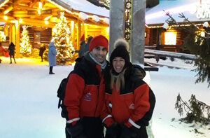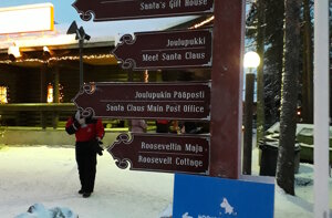Con un volo Finair via Helsinki raggiungiamo il luogo forse piu’ magico al Mondo.. il paese di Babbo Natale. Ci godiamo lo scalo in aeroporto con un bel pranzetto nordico in un bel ristorante con vista sulle piste.. fuori nevica e la notte polare e’ gia’ scesa.. ma sono le 14.10! Il nostro volo per Rovaniemi e’ in serata e arriviamo a destinazione tardi, mangiamo qualcosa in hotel e siamo subito fuori, nonostante la stanchezza ci catapultiamo alla scoperta del piccolo centro tanto immaginato … alla fine ci sono “solo” -15°.