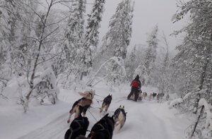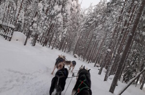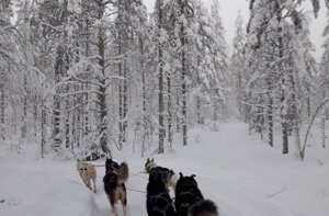 Rifocillati via di nuovo a sfrecciare sulla neve il cielo è ancora nuvoloso, chissà se vedremo l'aurora, sembra molto difficile...