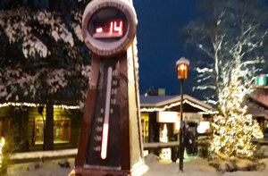Oggi il clima sembra che sarà più clemente e non si dovrebbe andare sotto i -11°. Ha nevicato tutta la notte rendendo tutto ancora più bello.