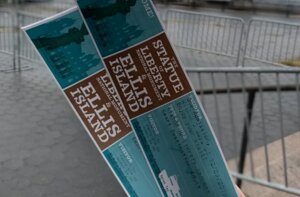 Dopo 20 minuti, questa volta di metro ci troviamo a sud di Manhattan. Dopo aver fatto la fila per i biglietti e i soliti controlli per la sicurezza imbarchiamo sul battello della Circle Line. Purtroppo il tempo oggi non ci assiste, pioggia e vento ci accompagnano per buona parte della giornata e le temperature rispetto ai giorni precedenti scendono in modo importante: ma anche questo è New York. Mentre il battello si allontana dalla banchina ammiriamo lo skyline di New York. Anche se ancora distante la Statua appare veramente grande ed imponente, è alta 46 metri, ed è il simbolo dell’America per chi arriva dal mare. Gli americani sono molto affezionati a questa statua che rappresenta per loro il simbolo della libertà e della fratellanza fra i popoli. Stiamo sull’isola meno di un’ora fra foto e visita al negozietto di souvenir, per poi proseguire con un altro battello alla volta di Ellis Island che dista appena 10 minuti.
